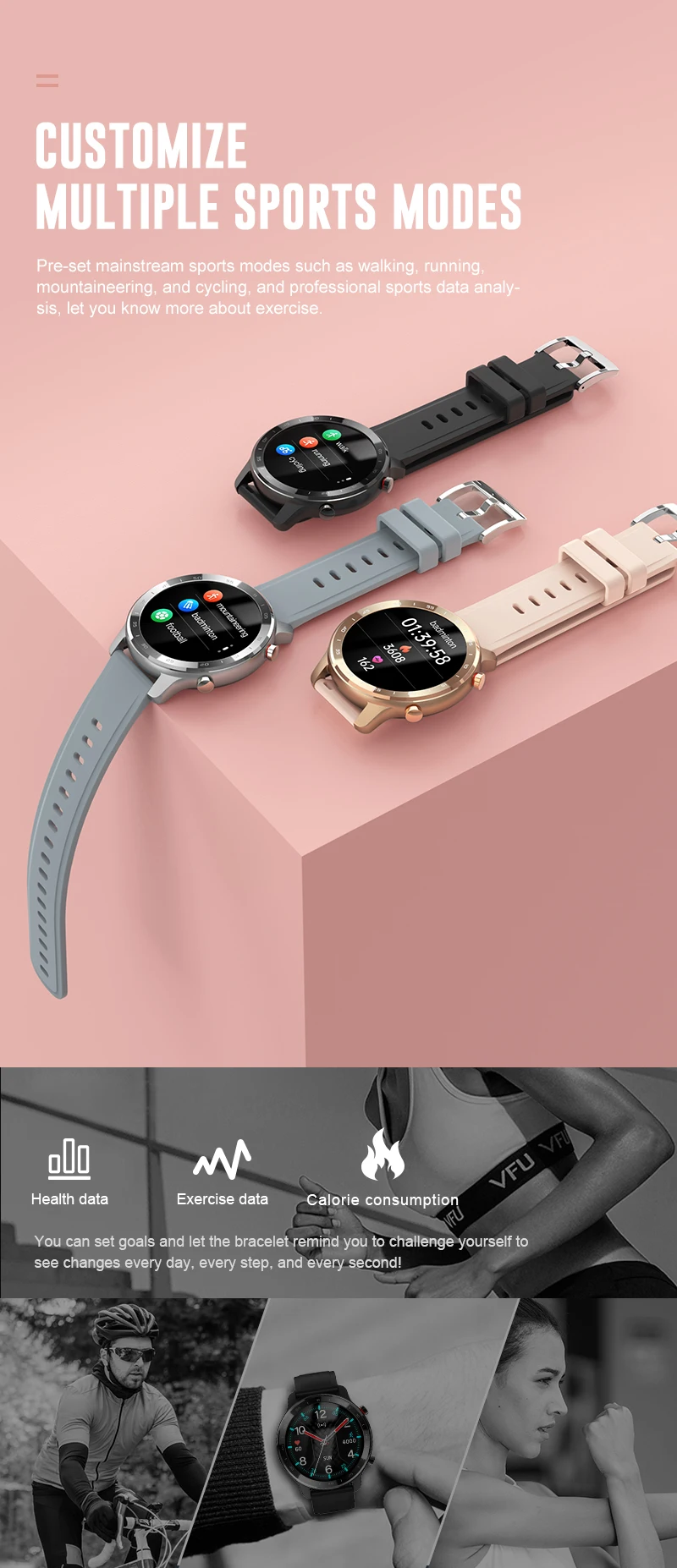 *Automatic heart rate test, device search, sedentary reminder, power saving mode